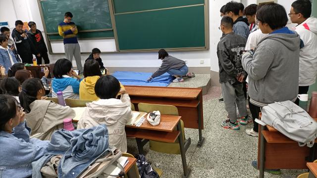 本次活动以“规范宿舍内务,建设文明宿舍”为主题,通过教同学们叠军被的方式展示我院风采。晚上7点,学姐们准时来到大一新生的教室,为同学们做亲身示范。一捏一折,每一步都十分利落娴熟。学姐不厌其烦地为在场的同学们耐心讲解,也对同学们的每一个问题给出了详实的解答。同时,现场的同学们也对叠军被展现出极大的兴趣,纷纷举起手机拍照、录像。经过学姐们的悉心整理,整洁美观的军被出现在了大家的眼前。学姐们熟练的动作也给在场的同学们留下了深刻的印象。当一床床军被像一个个豆腐块整齐的摆放在大家面前时,同学们爆发出了雷鸣般的掌声,在愉快的氛围中,此次活动圆满结束。