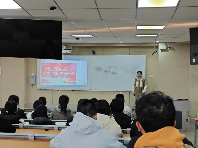 为引导学生坚定理想信念,勇担时代使命,10月23日,2024级1班于11号教学楼C304开展庆祝中华人民共和国成立75周年主题团日活动,本次活动由团支书薛春主讲,2024级1班全体学生参加。