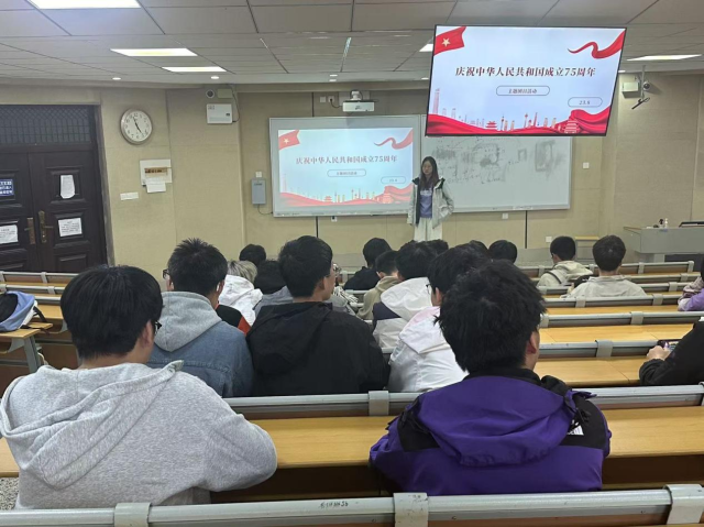 为庆祝中华人民共和国成立75周年,激发学生的爱国热情,提升民族自豪感,10月23日,2023级8班于11号教学楼A304开展庆祝中华人民共和国成立75周年主题团日活动,本次活动由团支书张雨婷主讲,2023级8班全体学生参加。