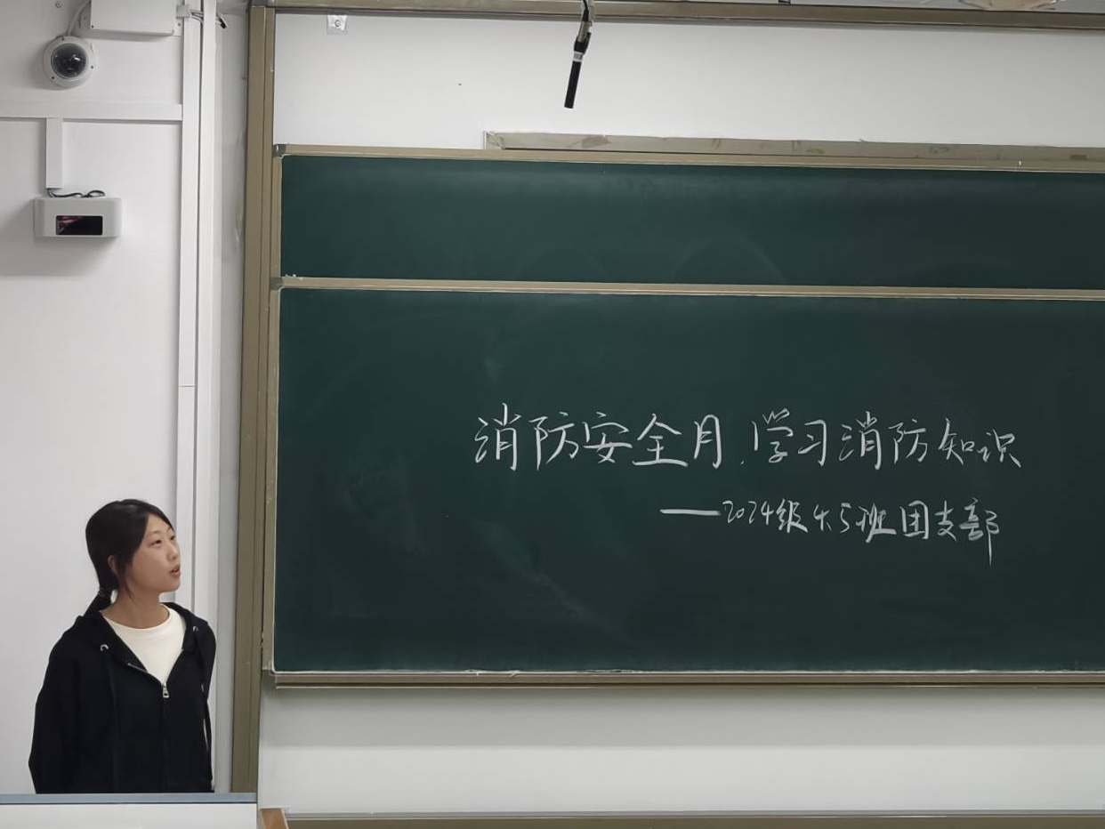 为提高学生消防安全意识,帮助学生深入学习消防安全知识,11月5日,2024级4班于11号教学楼A204教室开展消防安全月主题团日活动,由团支书孙若琪主讲,2024级4班全体学生参加。