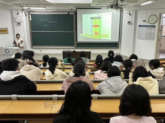 本次活动包括阐释基本知识、观看案例视频、交流应对技巧三部分。活动伊始,薛春向同学们详细介绍了火灾的形成原因、严重危害、预防措施和逃生技巧等消防安全的基本知识,同学们认真听讲,记录重点。随后,她通过真实的案例视频,强调消防安全不仅关系到个人的生命财产安全,还会危害大气环境、破坏生态平衡,每个人都必须时刻保持火灾警惕性,做好消防安全防范工作。互动环节,同学们积极发言,分享自己在生活中遇到的消防安全问题和应对方法,纷纷表示会把所学消防知识运用到实际中,积极向身边人宣传消防安全,共同营造安全的校园环境。