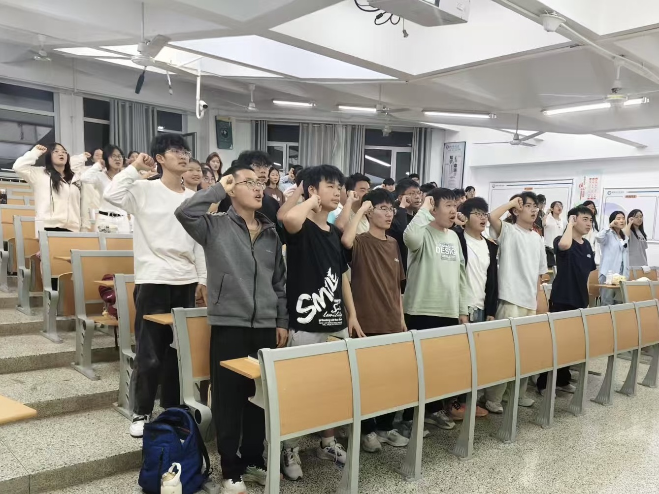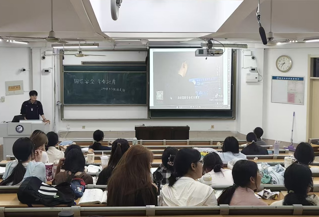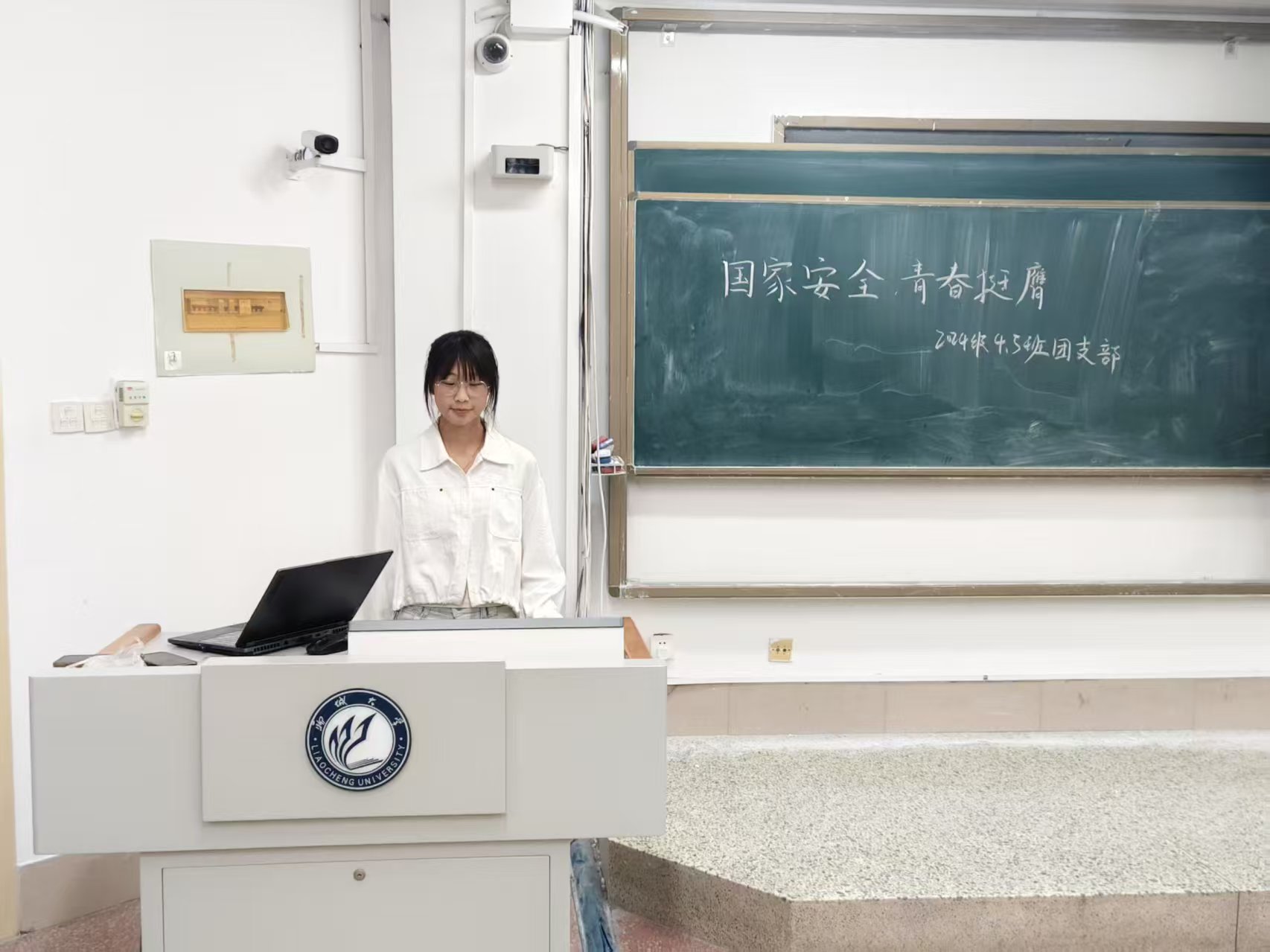 本次活动包括观看国家安全宣传教育片、解读《国家安全法》、讨论青年责任、立下青春誓言四个环节。活动伊始,团支部书记以直观生动的影像资料,全景展现当前国家安全在政治、经济、网络等领域面临的复杂风险与严峻挑战,让抽象的安全概念转化为可触可感的现实认知,帮助学生打破认知壁垒。交流互动环节,团支部书记鼓励同学们结合时代要求,讨论新时代青年挺膺担当的必要性以及维护国家安全的具体方式,并强调新时代青年不仅是国家安全理念的学习者,还应成为坚定的践行者。活动最后,团支部书记带领全体同学宣誓,“誓以吾辈青春,捍卫国家安全”,进一步激发了同学们维护国家安全的责任感和使命感。
