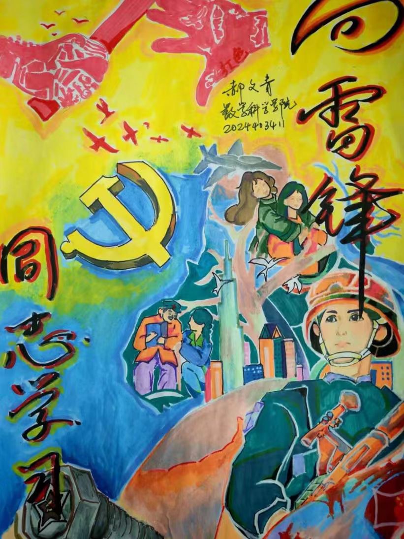 3月6日-8日,学院于线上开展“学雷锋精神,守初心使命”主题征文活动,学生从不同角度、不同层面出发,结合自身的感悟与思考,写出主题鲜明、内容充实的文章。3月8日,学院举办周末心理影院——《故事里的中国雷锋篇》观影活动,纪录片以细腻的镜头语言,串联起雷锋平凡却闪耀的生命轨迹。3月16日,学院举办了“墨绘雷锋,笔传精神”海报设计活动,每一幅作品都凝聚了同学们的独特创意与深刻理解,展现了青年一代对雷锋精神的创新表达与时代传承。