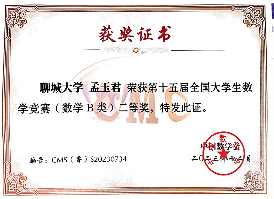 2023.12 第十五届全国大学生数学竞赛(数学B类)二等奖