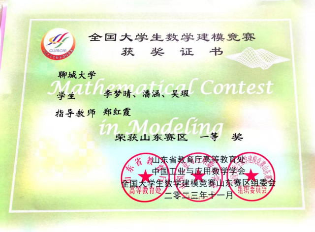2023.11 全国大学生数学建模竞赛山东赛区一等奖