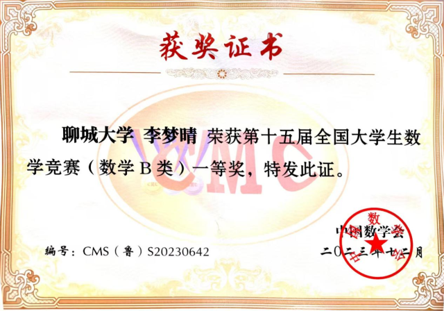 2023.12 第十五届全国大学生数学竞赛(数学B类)一等奖