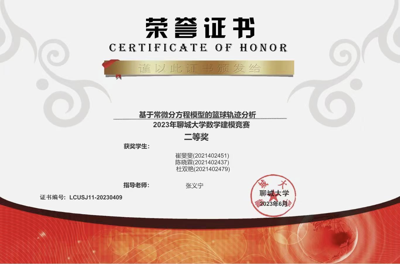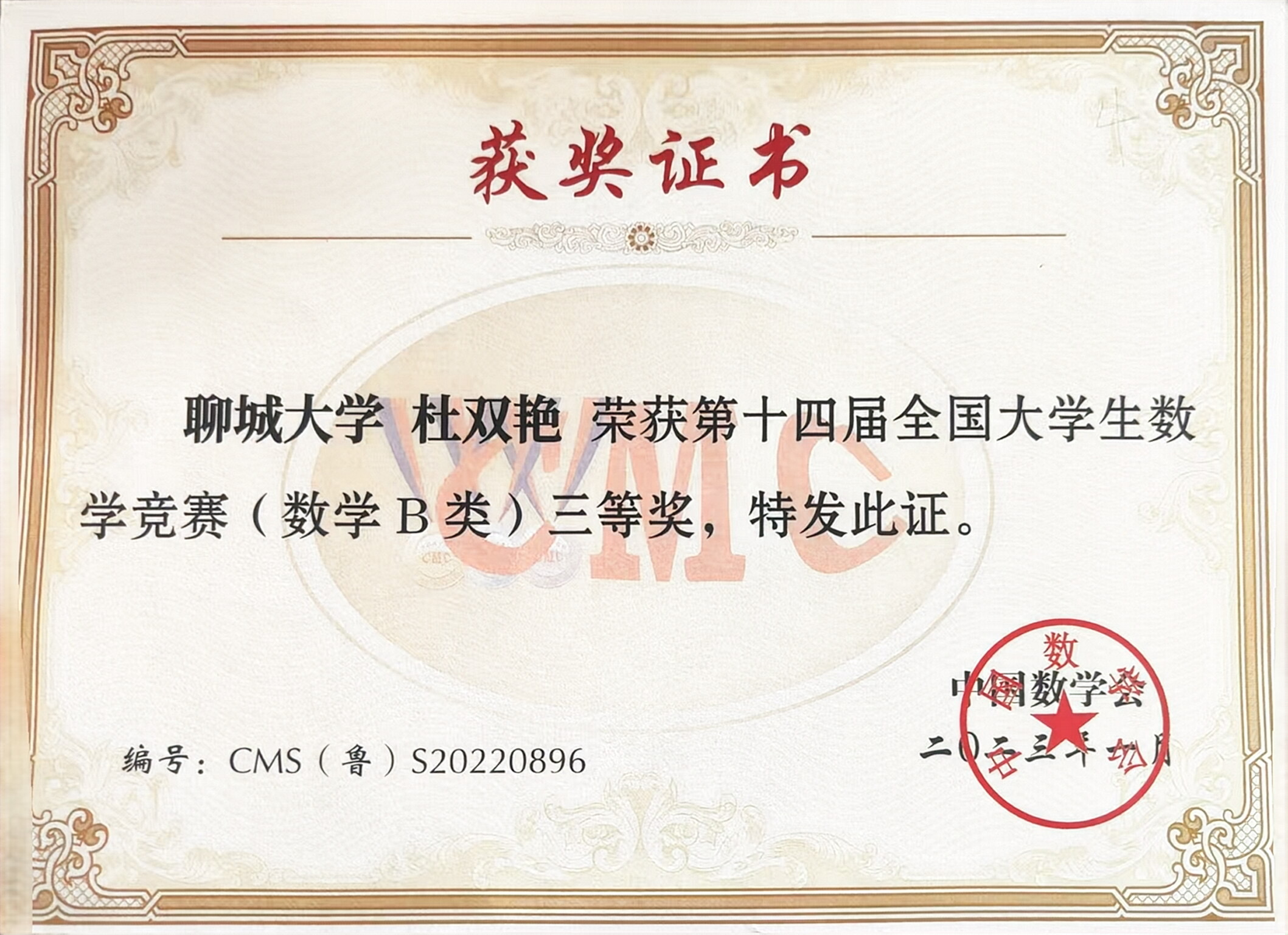 2022.12 第十三届山东省大学生数学竞赛三等奖