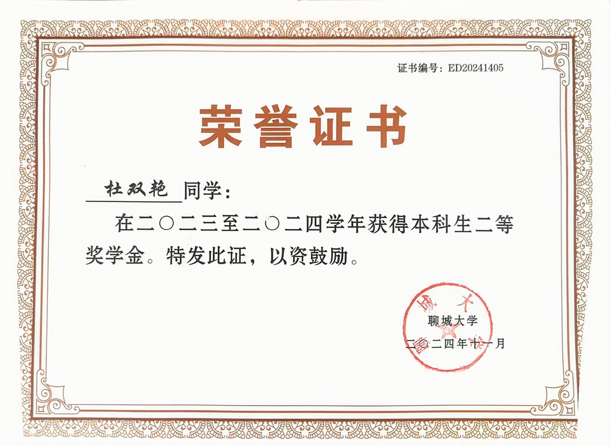 2024.11 太阳集团二等奖学金