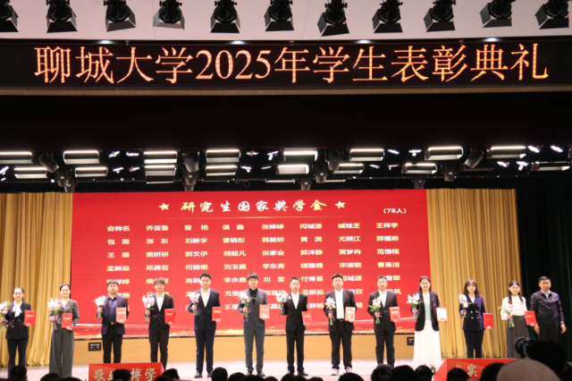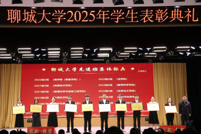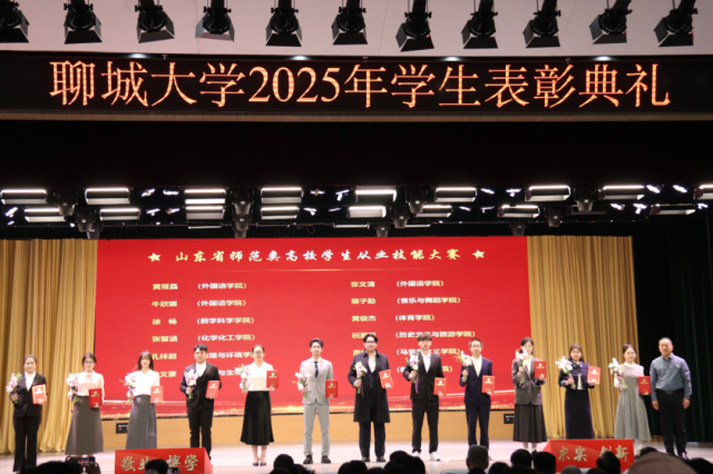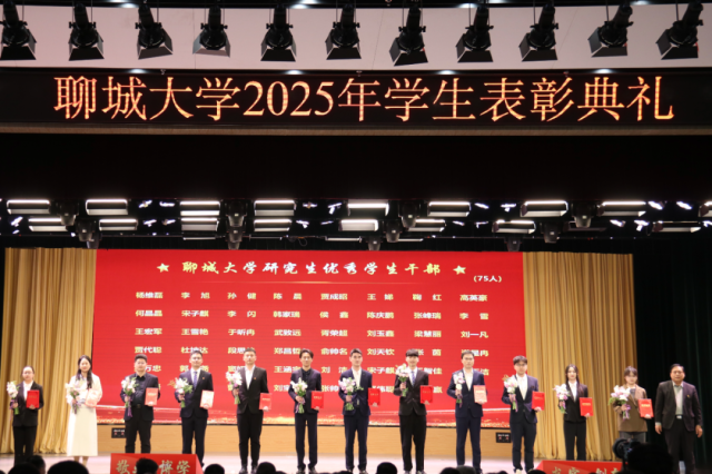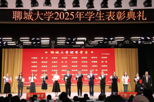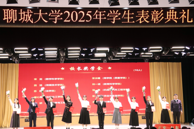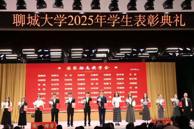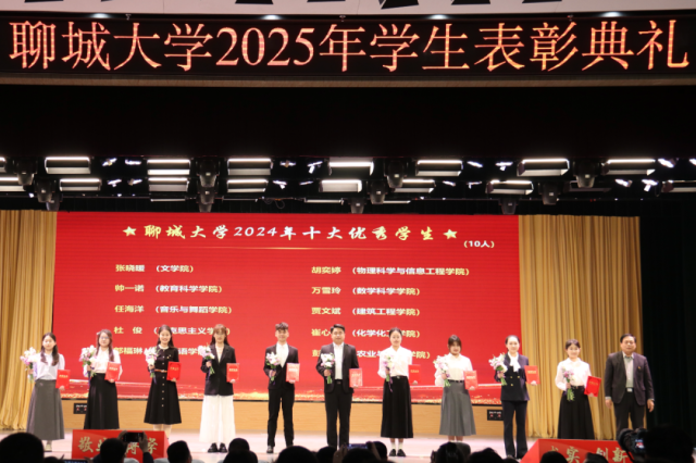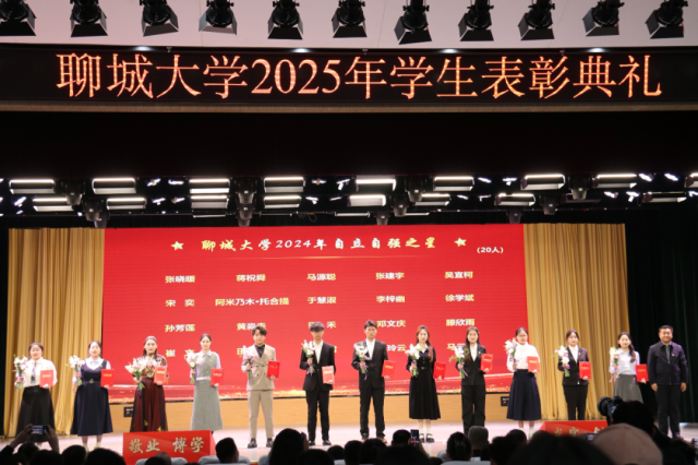 4月2日,“春启华章,星耀聊大”太阳集团2025年学生表彰典礼于西校区礼堂隆重举行,我院学子贾成昭、闫城源、吴亚菲、万雪玲、徐畅、马源聪、宋奕、杨婷文、马晗雪上台领奖。