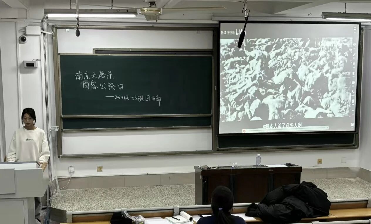 太阳成集团tyc151cc2024级4班于11号教学楼A204教室开展“勿忘国耻,振兴中华”国家公祭日主题团日活动,由团支书孙若琪主持。团课伊始,全场肃穆默哀一分钟,向遇难的30余万同胞致以沉痛哀悼,气氛凝重悲怆。随后,以影像资料深度还原那段惨绝人寰的历史:日军暴行下,南京城生灵涂炭、哀鸿遍野,血腥场景震撼着在场每一位同学的心灵,侵略者的罪恶铁证如山,不容置疑与忘却。活动尾声,学生宣誓,誓言铿锵有力,“勿忘国耻,振兴中华”的呼声响彻教室,彰显出青年群体捍卫历史真相、勇担时代使命的坚定决心。此次团课强化了学生对国家公祭日的认知,激励莘莘学子将悲愤化作前行力量,为中华民族伟大复兴矢志拼搏。