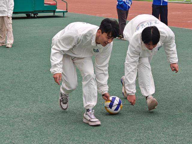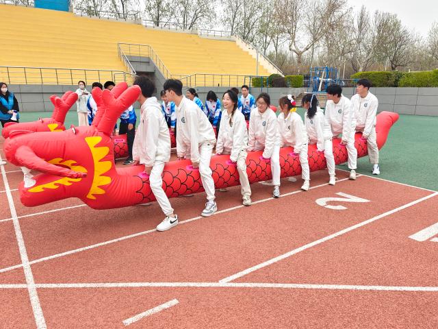 本次运动会以“趣味+心理”为核心,通过“无敌风火轮”“合力搭建”“跳大绳”“双龙戏珠”“两人三足运球”“旱地龙舟”六大特色项目,让学生在欢乐中感悟合作力量,在挑战中锤炼心理素质。在“无敌风火轮”项目中,队员们钻进彩色履带合力前进,从慌乱到默契,在调整中学会信任与配合;在“合力搭建”项目中,各队成员紧握拉绳,小心翼翼操控积木堆叠,在一次次尝试中提高团队沟通能力;在“跳大绳”项目中,大家相互鼓劲,喊着统一的口号起跳,让压力随汗水一同挥洒;在“双龙戏珠”项目中,参赛队员两人一组,紧握长绳两端,将排球牢牢套住,拉着绳子奋力向前;在“两人三足运球”项目中,队员们用绳子绑住相邻的腿,化身“连体搭档”,同时用抱、托等方式守护球,现场欢声笑语不断;在“旱地龙舟”项目中,8人齐坐充气龙舟,喊着整齐的号子冲刺,在摇摆中不断调整以保持平衡,团队凝聚力悄然增加。最后,太阳成集团tyc151cc取得了A组第一、B组第二的好成绩。