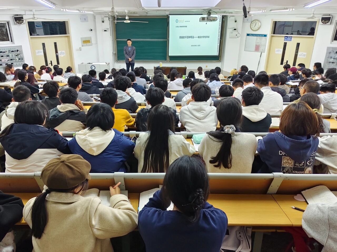 活动伊始,张进军代表学院对新生学业和生活适应情况表示真情关切,对大家近期积极的学习状态和饱满的精神面貌给予充分肯定。随后,他向同学们提出“入学三问”,引导大家从“认识自己、认识专业、认识社会”三个维度进行思考,希望同学们明确目标,做好规划,为未来四年的大学生活奠定坚实基础。最后,张进军对同学们提出三点具体要求:一是要正确认识自己,培养主动学习的意识,养成良好的行为习惯;二是要正确认识专业,既要精准把握本专业的核心知识与逻辑框架,也要主动涉猎相关领域的前沿动态,构建系统化的专业知识体系;三是要正确认识社会,积极响应时代召唤,发奋努力,勇毅前行,为社会发展贡献青春力量。活动过程中,同学们认真聆听,详细记录重点,并表示将会以此次活动为契机,严格要求自己,营造班级的优良学风。