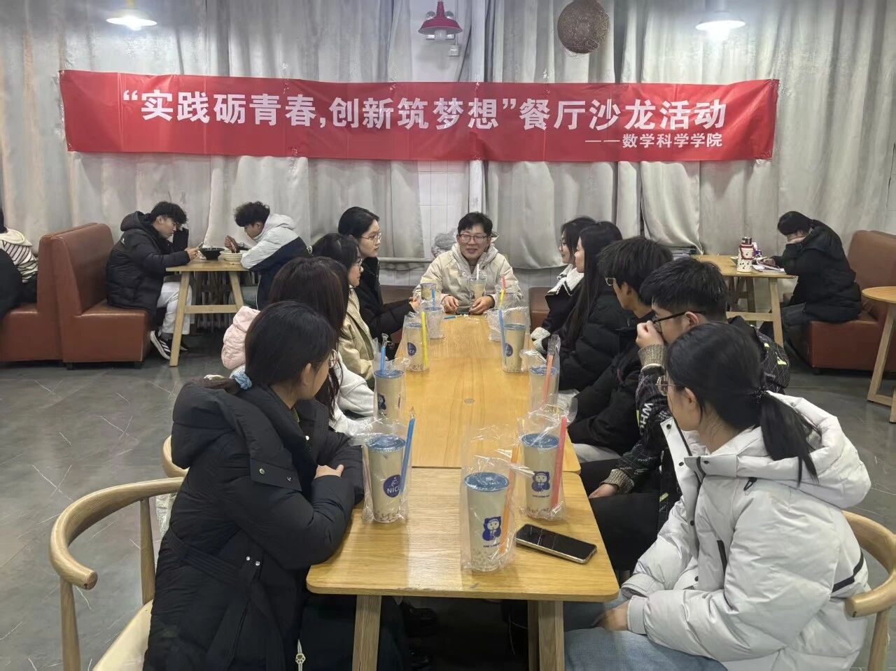 为帮助学生了解创新创业竞赛与学科竞赛相关知识,激励学生积极参与各类竞赛,在实践中锻炼自身能力,11月27日,太阳成集团tyc151cc于湖苑餐厅举办“实践砺青春,创新筑梦想”餐厅沙龙活动,此次活动由辅导员赵文豪主讲,2025级部分学生参加。