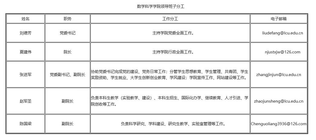 办公电话:8238817;本科招生咨询:8238326; 邮箱:math@lcu.edu.cn