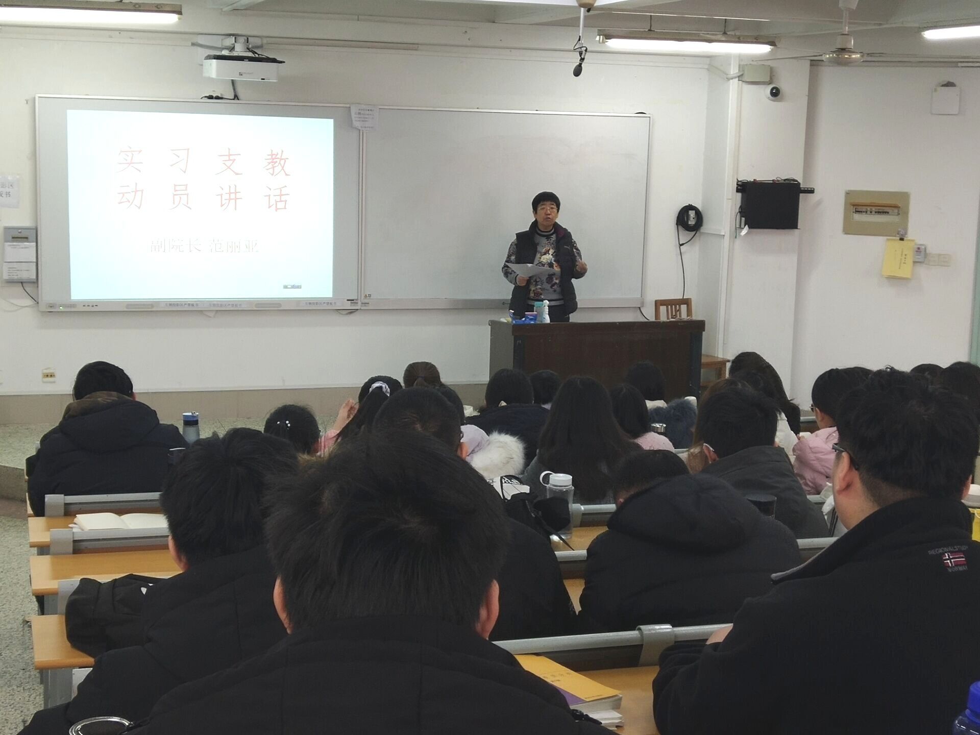 培训会首先是范丽亚副院长发表动员讲话,强调师范生要在实践中历练成才,真正使实习支教成为大学生人生奋斗的新起点,并且寄语同学们:捧着一颗心来,不带半根草去;真正做到带着感情、满怀信心地下去,加深感情,充满自信的回来,扎扎实实把实习支教工作做好、做实,为学校争光,为学院争光。并特别强调让同学们时时刻刻把安全放在第一位,务必做到:高高兴兴实习,安安全全返校。