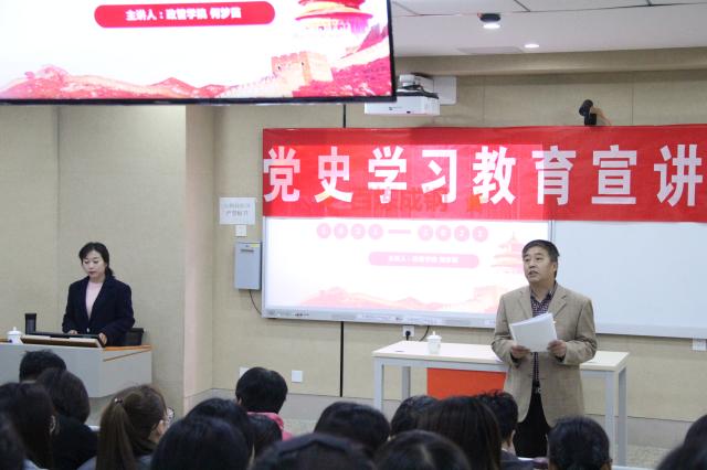 在中国共产党成立一百周年之际,为深入学习贯彻习近平新时代中国特色社会主义思想,巩固深化“不忘初心、牢记使命”主题教育成果,扎实推进党史学习教育。2021年4月22日下午,太阳成集团tyc151cc邀请太阳集团党史学习教育宣讲团成员何梦茹为太阳成集团tyc151cc全体教职工及学生党员进行党史学习教育宣讲,宣讲报告的题目是《百炼成钢 ——中国共产党的百年光辉》。