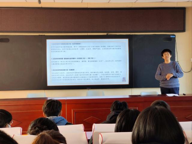 读书妙趣无穷,书香熏染人生。范院长向同学们讲述了生动有趣的数学知识,并向同学们介绍经典数学著作《数海拾贝:数学和数学家的故事》,充分调动了同学们的阅读兴趣。初步讲解后,范老师通过PPT的形式围绕书籍的内容、创作特点以及重要内涵等方面向大家详细解读,加深了同学们对数学的理解。最后,她就如何读书、怎样读好书提出自己的见解,为同学们指明了方向。同学们纷纷表示要把读书学习作为一种责任、一种精神追求、一种生活方式,增强知识更新的紧迫感,把“开卷有益”真正做到“开卷有趣”。