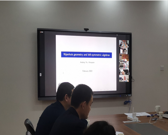 尼卡巴泽教授作了题为《О формулировках и некоторых применениях задач на собственные значения тензорных объектов в механике》的报告,就力学中张量对象特征值问题的公式和应用进行了简要介绍。孔雅耶夫博士作了题为《Nijenhuis geometry and left-symmetric algebras》的报告,并对流行与左对称的、Novikov的和交换的结合代数之间的联系进行了简要分析。