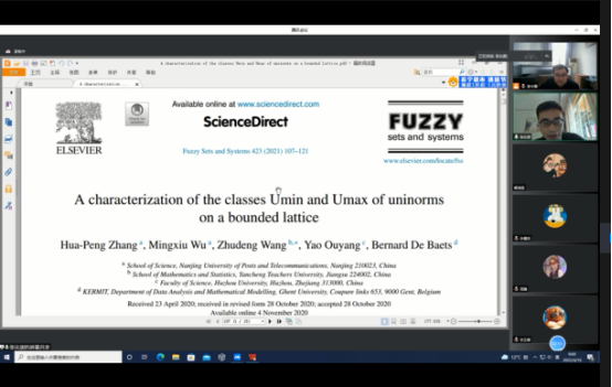2022年4月16日,应太阳成集团tyc151cc的邀请,南京邮电大学张化朋教授做客聊大,作了题为“有界格上的统一模与零模(Uninorms and nullnorms on bounded lattices)”的线上学术报告。报告由李令强教授主持,太阳成集团tyc151cc不确定理论方向的老师和研究生听取了本次报告。