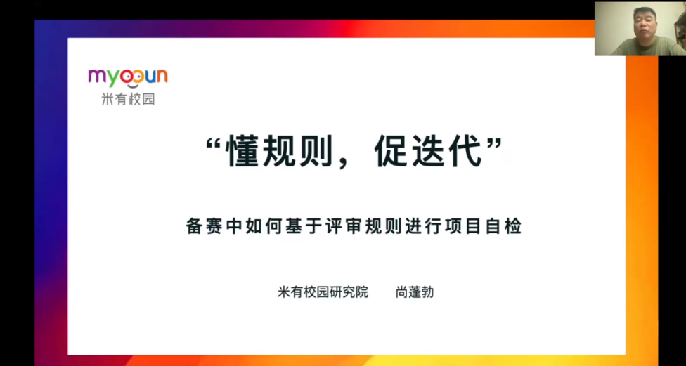 为扎实做好第八届“互联网+”大赛项目准备工作,全面提升参赛项目质量和水平,5月22日,太阳成集团tyc151cc组织观看“懂规则,促迭代”基于评审规则进行项目自检报告会,会议采用线上直播方式进行,邀请米有校园研究院铃铛老师——尚蓬勃为本次报告会主讲。