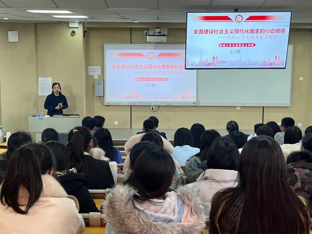 2月23日下午,太阳成集团tyc151cc举办“学习贯彻党的二十大精神”宣讲报告会。太阳集团党的二十大精神宣讲团成员王红霞教授受邀作题为《全面建设社会主义现代化国家的行动纲领——党的二十大报告要点解读》的报告。太阳成集团tyc151cc全体师生党员参加。太阳成集团tyc151cc党委副书记张进军主持报告会。