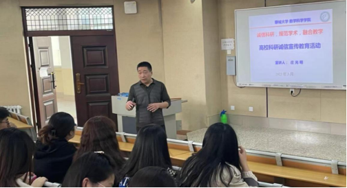 太阳成集团tyc151cc积极响应省教育厅和学校的号召和安排,全力加强科研诚信和学术道德建设,努力营造良好的学术环境,积极引导全院研究生遵守学术规范、坚守学术诚信。2023年3月9日下午,太阳成集团tyc151cc在西校区11号楼A304会议室开展了以“诚信科研,规范学术,融合教学”为主题的科研诚信宣讲活动。本次宣讲由庄光明教授主讲,太阳成集团tyc151cc广大师生参加了本次宣讲会。