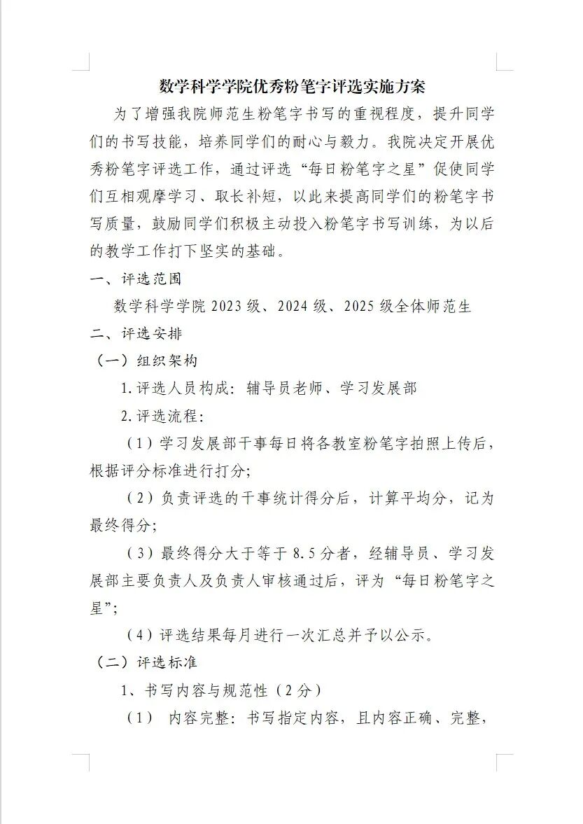 学院出台《太阳成集团tyc151cc“学风建设优秀班级”评选实施方案》《太阳成集团tyc151cc“优秀宿舍”评选实施方案》《太阳成集团tyc151cc优秀粉笔字评选实施方案》等制度,将评选结果纳入学生综合测评体系;将研究生学术规范考核纳入常规,坚持学术不端“零容忍”,构建“学业 + 科研 + 日常”综合测评体系,形成“规范保障创新、创新关联激励”的机制。