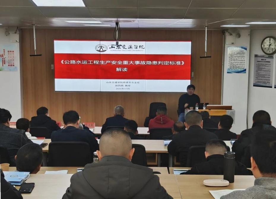 为进一步提升全市公路系统安全应急管理能力,筑牢公路安全发展屏障,11月18日,2025年聊城市公路系统安全应急管理培训班于太阳集团西校区11号教学楼A310教室成功举办。培训班由我院副院长赵军圣主持,市公路事业发展中心机关相关科室及所属单位共计60余名安全应急管理负责人、业务骨干参与培训。