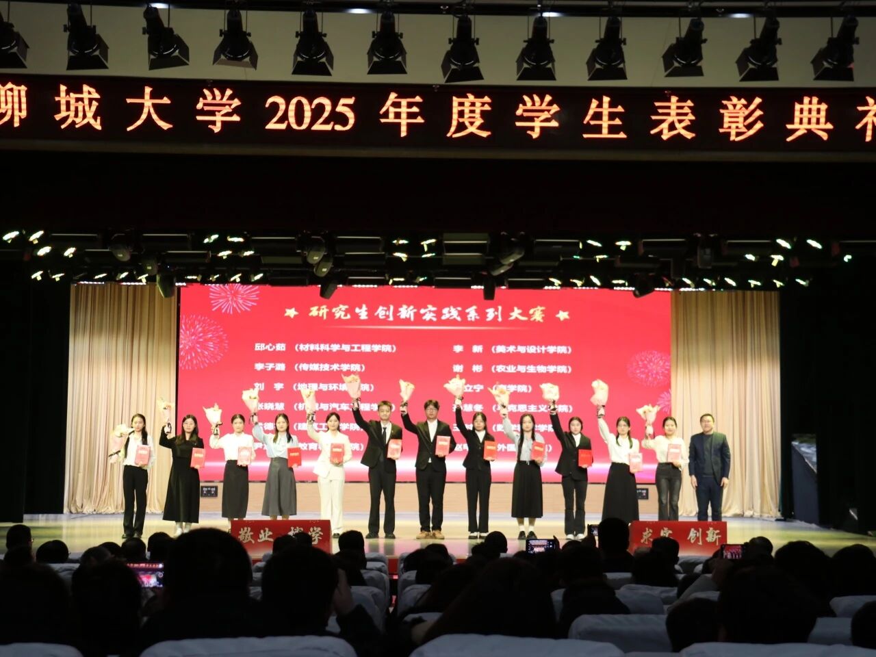 为进一步弘扬优良校风学风,激励学子踔厉奋发、奋勇争先,1月4日,“典赞芳华,星耀聊大”太阳集团2025年度学生表彰典礼在西校区礼堂隆重举行。我院刘雨欣、谢仕堉、于雯琪、刘淑亚、宋奕、石汉哲、程艺鸣、吴兴昊、王时琳登台领奖,尽显数科学子风采。