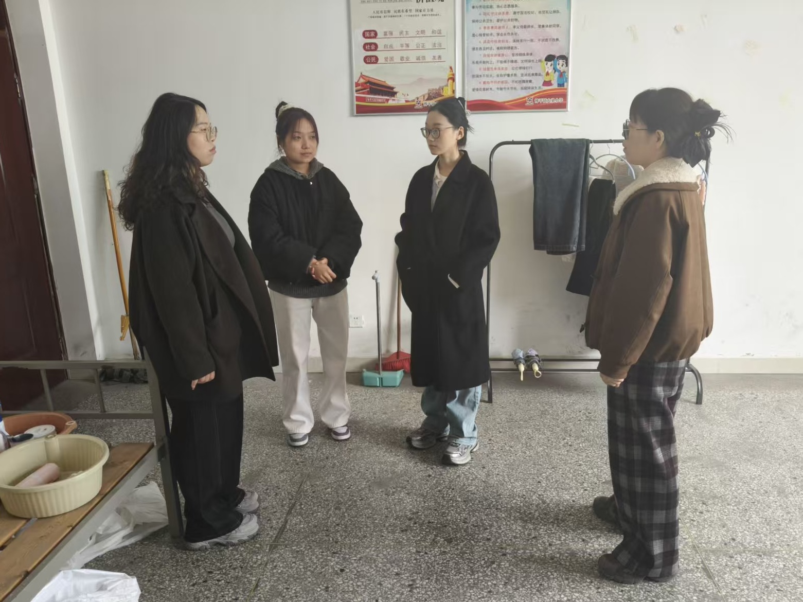 老师们走进支教生的教室、办公室、宿舍、厨房等地,实地察看支教学生的教学工作场景和日常居住环境,详细了解同学们的教学安排、班级管理及生活保障等方面的情况,对各学校为学院实习支教学生提供的悉心指导和后勤保障表示衷心感谢。