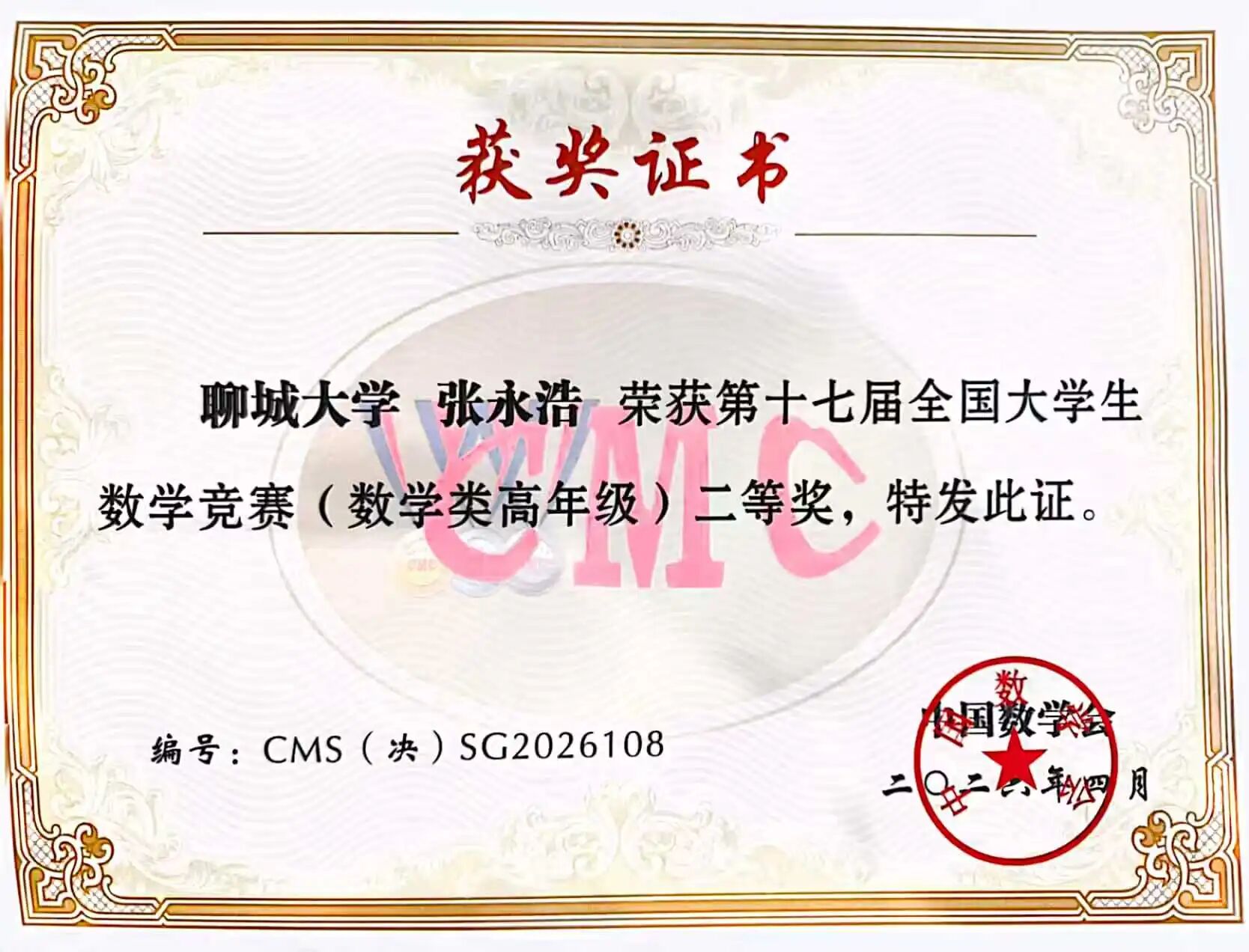 4月18日至19日,第十七届全国大学生数学竞赛决赛在四川大学举行。数学与系统科学学院教师樊树芳全程指导,数科学子张永浩凭借扎实过硬的专业能力,荣获数学类高年级组国家级二等奖,不仅为学校争得荣誉,更取得了我校在该项赛事数学类组别的历史性突破。