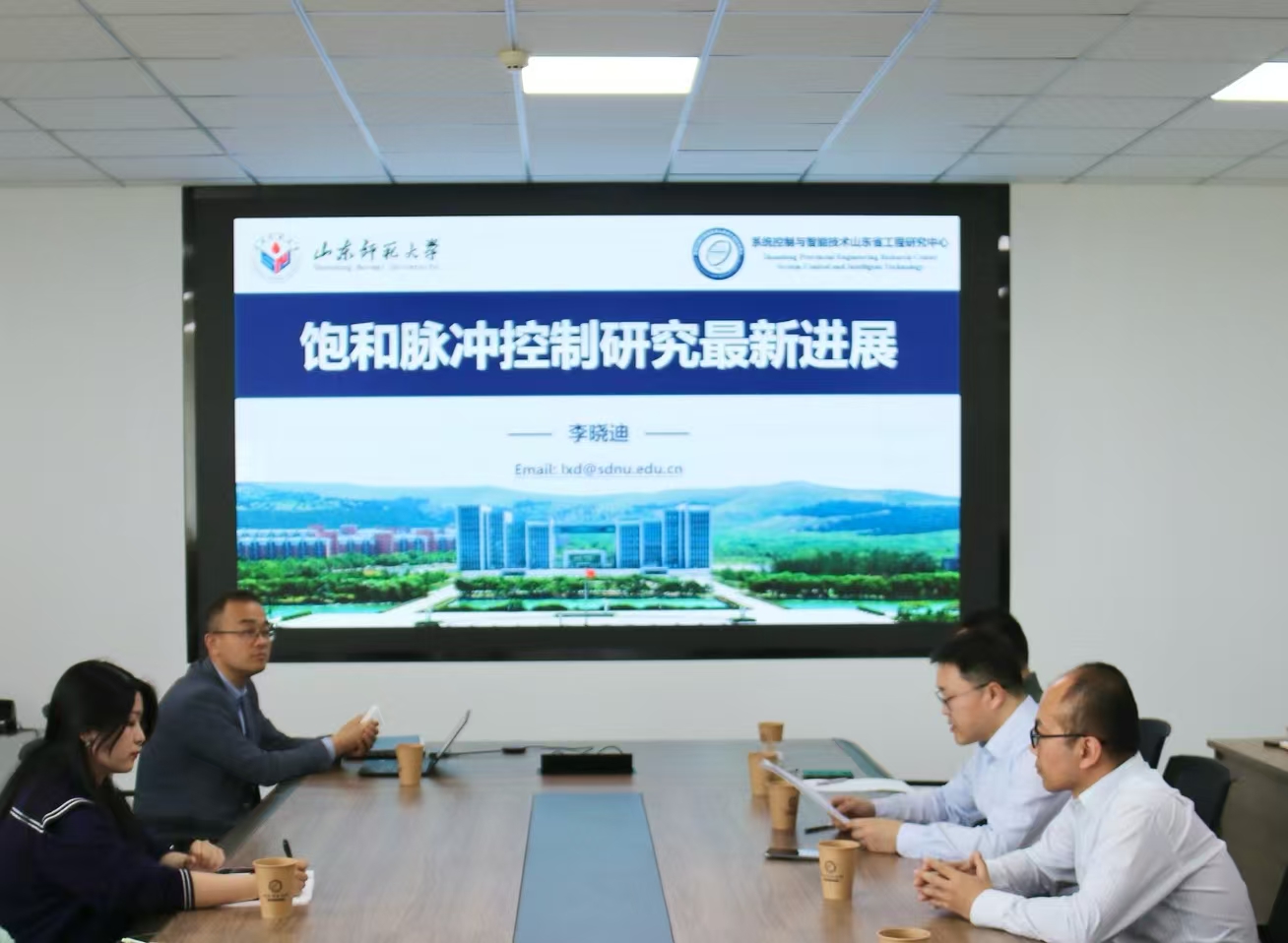 2026年4月23日,应太阳集团数学与系统科学学院邀请,山东师范大学党委常委、副校长李晓迪教授在综合实验楼A807会议室作了题为“饱和脉冲控制研究最新进展”的学术报告。此次报告由太阳集团研究生处处长、数学与系统科学学院院长夏建伟主持,学院控制相关方向的师生到场参加。