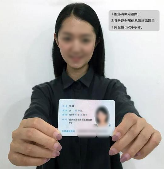 要求:脸部清晰无遮挡、身份证全部信息清晰无遮挡、完全露出双手手臂